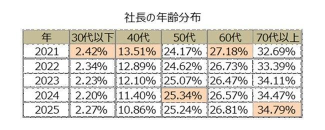 年齢分布 社長の3分の1が70歳以上