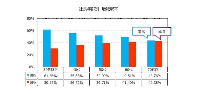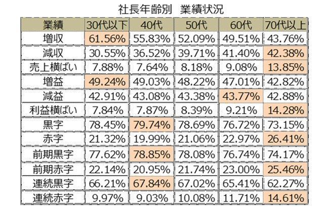 社長の年齢と売上は反比例の相関、40代は手堅く赤字が少ない